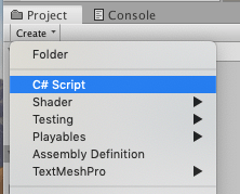 Use the “Project” pane’s “Create” button to create another script, and name it “Conversation”. Then attach the script to the “Text” GameObject.
